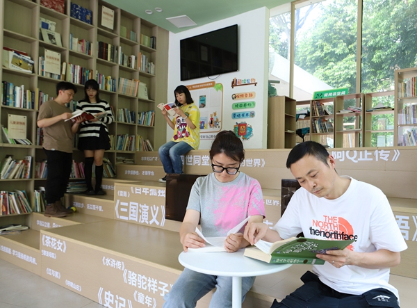 四川省成都市锦江区纪委监委积极开展读书活动,通过读经典、荐好书、赠廉书、谈体会等方式,形成爱读书、读好书、善读书的浓厚氛围。图为近日,该区纪检监察干部到知识共享站读书学习。(成都市锦江区纪委监委 封金剑 摄)