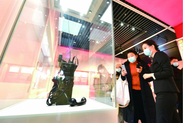 日前,“红色电波中的领袖风范——毛泽东同志香山时期发布电报手稿”专题展览在北京香山革命纪念馆举行。图为观众在观看拍摄展出的电台。(图片来源:人民视觉)