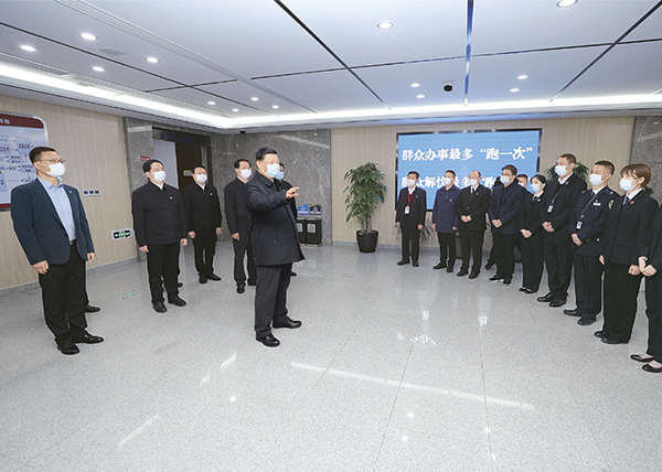 2020年3月29日至4月1日,中共中央总书记、国家主席、中央军委主席习近平在浙江考察。这是3月30日,习近平在湖州市安吉县社会矛盾纠纷调处化解中心,了解群众矛盾纠纷一站式接收、一揽子调处、全链条解决模式运行情况。 新华社记者 鞠鹏/摄