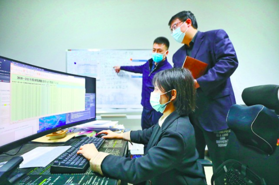辽宁省沈阳市纪委监委对沈阳粮油集团粮食出入库数据开展数据分析,构建粮食购销领域专项监督模型。图为该市纪委监委大数据监督室工作人员围绕数据进行建模。袁国航 摄