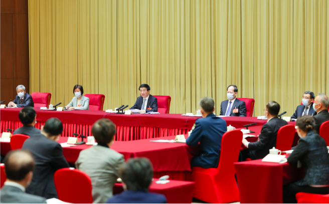 3月6日,中共中央政治局常委、中央纪委书记李希看望出席全国政协十四届一次会议的民进、新闻出版界委员并参加讨论。 新华社记者 王晔 摄