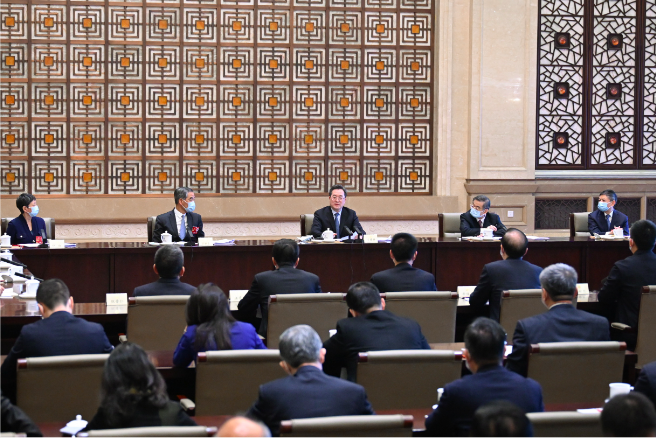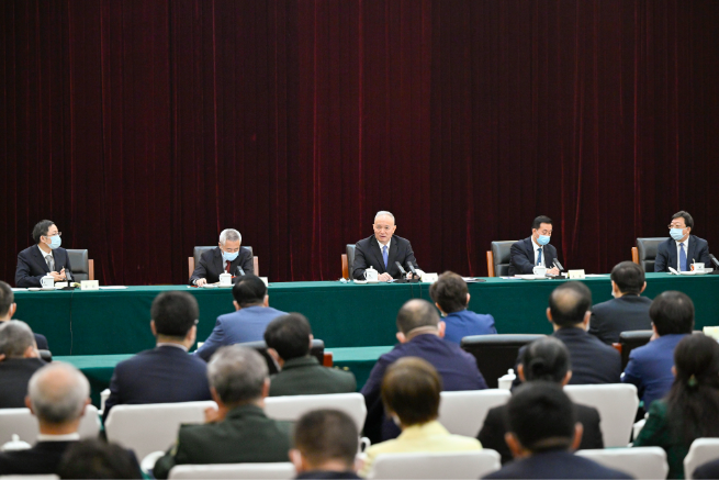 3月6日,中共中央政治局常委赵乐际看望出席全国政协十四届一次会议的民革、台盟、台联界委员并参加讨论。 新华社记者 岳月伟 摄