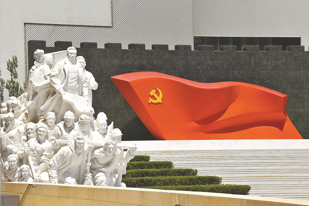 一百多年来,中国共产党之所以能够一步步由弱到强、由小到大,一次次浴火重生、绝处逢生,团结带领人民创造出彪炳史册的伟大成就,其重要历史经验之一,就在于坚持自我革命。图为中国共产党历史展览馆门前的大型雕塑。 图片来源:视觉中国