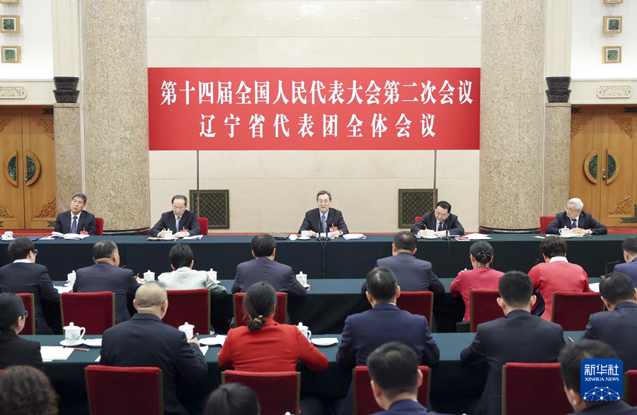 3月5日,中共中央政治局常委、国务院副总理丁薛祥来到他所在的辽宁代表团,同代表们一起审议政府工作报告。新华社记者 丁海涛 摄