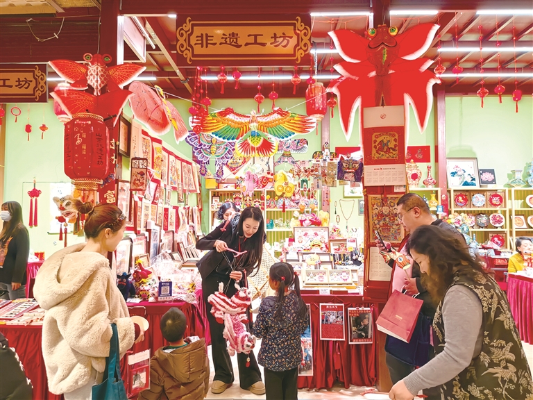 图为现场观众在“非遗工坊”前,体验并选购春节“非遗年礼”。李灵娜 摄