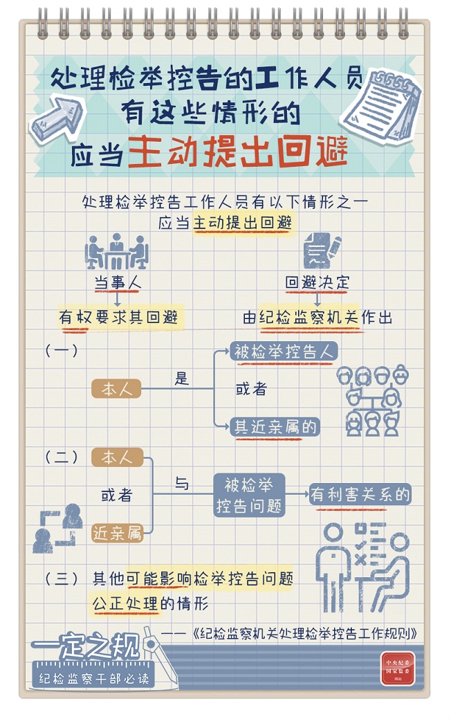 一定之规•纪检监察干部必读丨处理检举控告的工作人员有这些情形的,应当主动提出回避